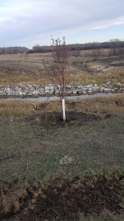 Finally, the riparian area to the west of each spawning shoal was improved with the planting of native trees, shrubs, and grass to help provide shade for spawning fish, increase stream bank stability, and further increase water quality.